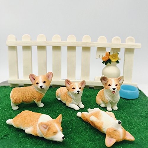 5-Pack Pembroke Welsh Corgi Sculpture Figurine Toy, Hand-made and painted Pet Portrait Dog Statue Ornament Memorial Decoration, Corgi Collectibles, Pembroke Welsh Corgi Art (Corgi 5-Pack)