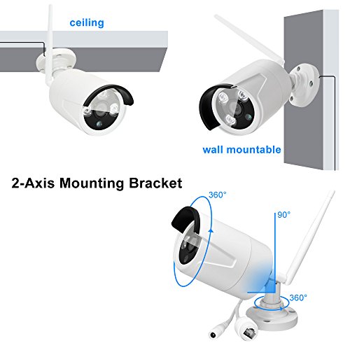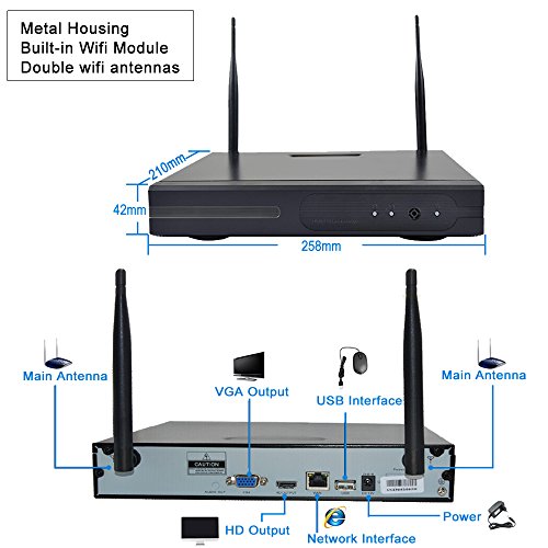 -. Feature : Mainstream Full HD Video - Get a sharp and sharp image day or night with the Automatic IR-Cut Filter. Up to 70ft night vision. / Optimized Recording - Multiple choice recording mode can save more HDD capacity. Set continuous recording during the day,motion detection at night. 1 1080P camera need 2GB/hour, the NVR max. support the 1pcs 4TB HDD. / Situation early-warning - Be notified when there are unexpected movements. Smart notifications will be pushed to your smartphone. You won't miss any moment with remote and local playback. / Remote View Anytime Anywhere - Download Free App,Create an account, enter WIFI password, add the cameras, then you'll have a live view of your cameras within minutes. / IP66 Waterproof cameras - Installed indoors or outdoors to keep your home safe.