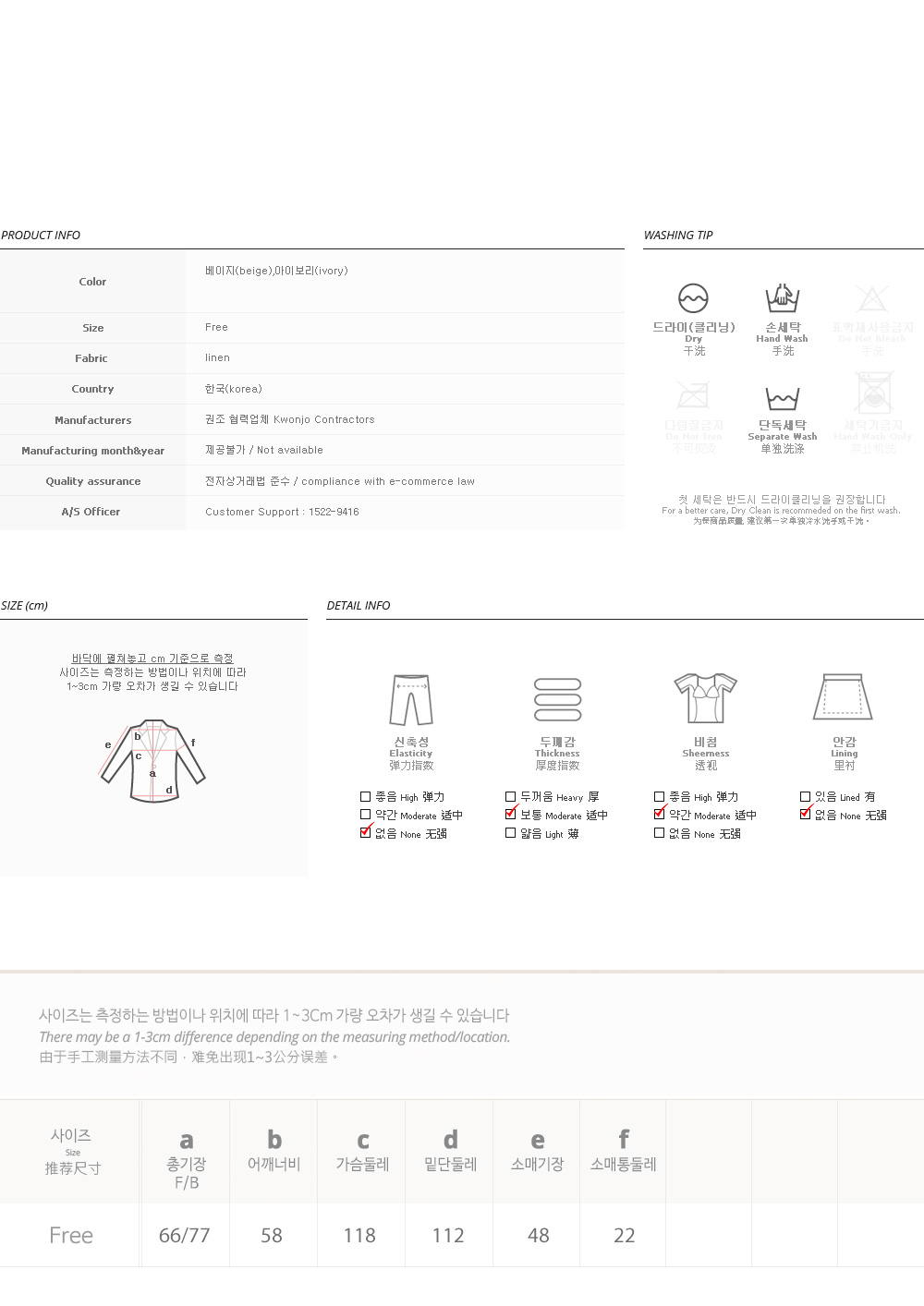 피팅 컬러와 사이즈는 아이보리,Free입니다
