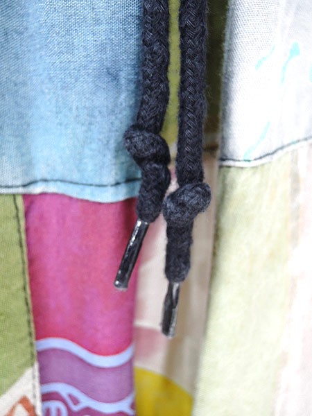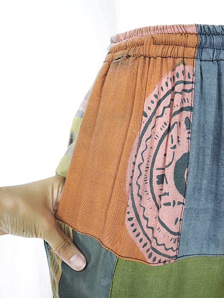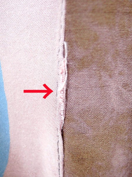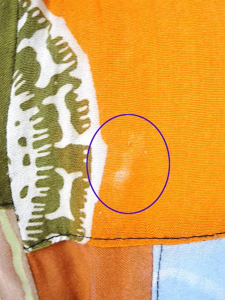 タグなし、素材、サイズ不明。左足裾に生地ホツレあり。ウェストステッチホツレ、色落ちシミあり。ヒップ部分、左ポケット付近など、全体にホツレ箇所あり。右ポケット下付近にヨゴレ、生地スレダメージ。