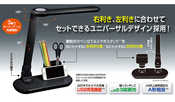 ●USB出力端子付きで、点灯しながらスマホ充電もできます。