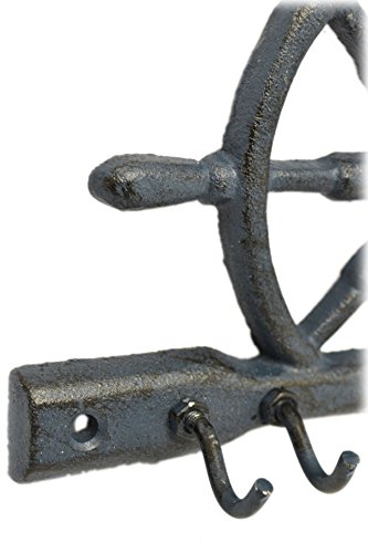 -. Title : Metal Blue Boat Helm Nautical Cast Iron 4-Hook Coat Hat Hanger Rack