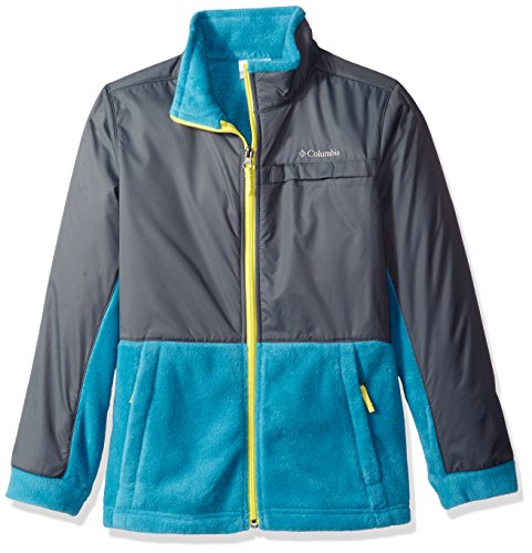 The Columbia boy's steins mountain overlay is a soft, warm fleece jacket with a performance weatherproof overlay at upper torso and arms. A multi-tasking fleece jacket built with a combination of wind- and water-resistant nylon overlays and cozy soft filament fleece, this versatile mid layer will keep them warm in cool weather.Feature