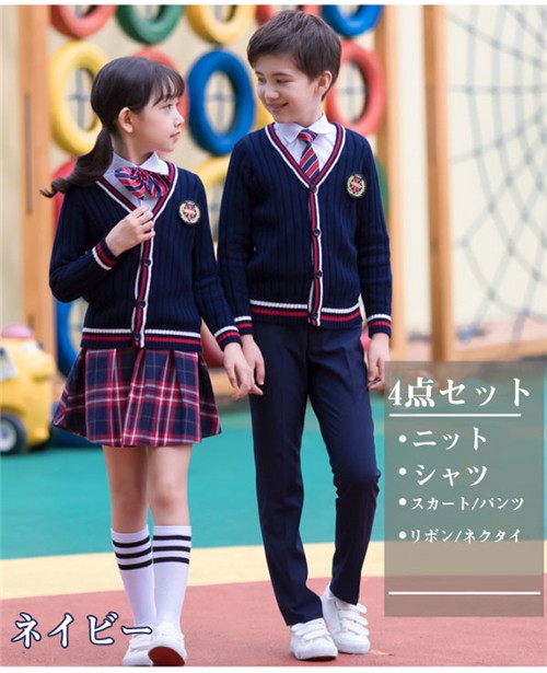 セット内容:4点:(女の子:ニット、スカート、リボン、シャツ)(男の子:ニット、パンツ、ネクタイ、シャツ)120 参考身長120cm 参考体重20-25kg ニット丈46cm シャツ丈49cm パンツ丈75cm スカート丈32cm 130 参考身長130cm 参考体重25-30kg ニット丈46cm シャツ丈52cm パンツ丈82cm スカート丈32cm 140 参考身長140cm 参考体重30-35kg ニット丈52cm シャツ丈55cm パンツ丈88cm スカート丈36cm150 参考身長150cm 参考体重35-40kg ニット丈52cm シャツ丈57cm パンツ丈94cm スカート丈36cm160 参考身長160cm 参考体重40-45kg ニット丈58cm シャツ丈60cm パンツ丈96cm スカート丈40cm170 参考身長160cm 参考体重45-50kg ニット丈58cm シャツ丈63cm パンツ丈98cm スカート丈40cm 縫製の状態や素材によりまして、若干の誤差がある場合がございます。あらかじめご了承ください。 ※◆納期について、商品の在庫状況により、納期が違います。