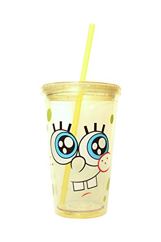 Silver Buffalo SG55087 Nickelodeon SpongeBob Big Eyes Plastic Cold Cup with Lid and Straw, 16-Ounces