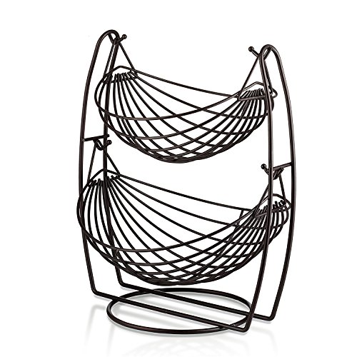 2 tier metal fruit basket fruit bowl double hammock design to artfully display your fresh produce (fruits not included)