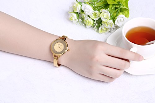 WATERPROOF FOR DAILY USE: With life waterproof property. When the water spilled on the watch, pls don't worry and wipe clean. The bangle watch will run precisely still.