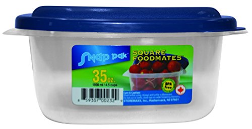 StoreMaxx Foodmates 232 Square Food Storage Container with Clear/Blue Lid (Pack of 12), 35 oz., Slate Blue/Opaque
