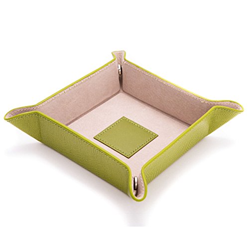 -. Feature : Keep your vanity organized with our beautiful green leather snap tray with pig skin leather lining. / Measures approximately: 7" Square x 1.25"H.