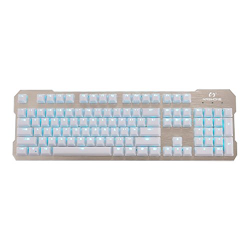 -. Title : Nashone mechanical gaming keyboard white Wired Ice blue backlight blue switch 104 keys Gaming typewrite mechanical keyboard Transparent crystal keycap design