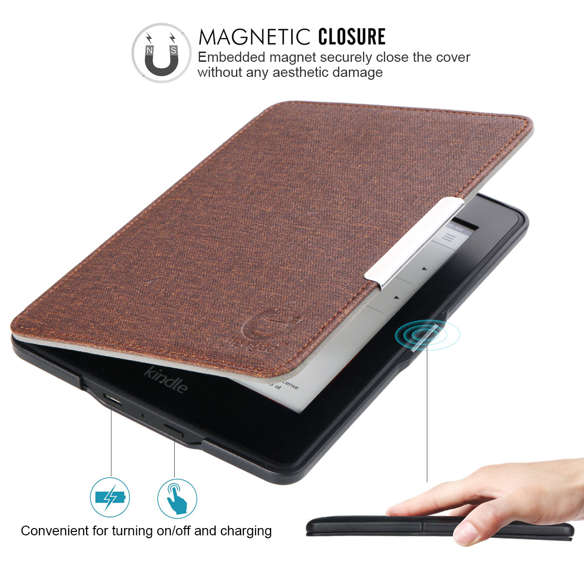 Thin, lightweight, and durable, this cover is perfect for taking Kindle Paperwhite wherever you go. When you are finished enjoying your content, simply close the cover to put your Kindle Paperwhite to sleep and you are good to go. The integrated magnetic closure will ensure your cover stays shut while in a backpack, purse, or briefcase.