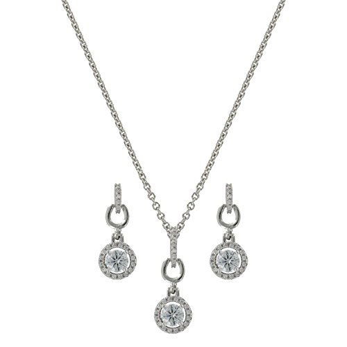 -. Feature : Jewelry Set / Cubic zirconia / Silver / Horseshoe detailing / Dangle earrings