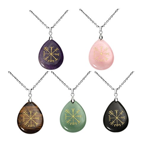 QGEM Guidepost Compass Vegvisir Pendant Necklace Engraved Old Northern Europe Viking Rune with Chain 24"