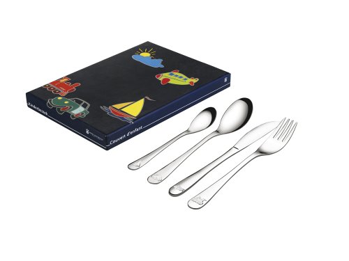 -. Feature : für Kinderhände bestens geeignet / Auf diesem 4-teiligen Kinderbesteck sind Fahrzeuge abgebildet: ein Segelboot, ein Auto, ein Flugzeug & ein Zug. / Durch die Ausführung des Bestecks aus hochglanzpoliertem Edelstahl 18/10 ist es geeignet für den Geschirrspüler.