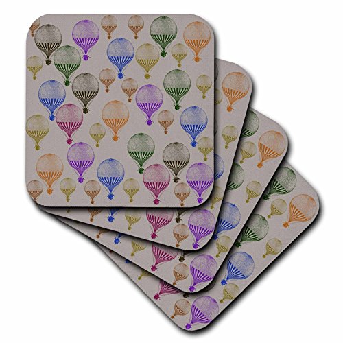 3dRose cst_110310_2 Vintage Colorful Hot Air Balloons-Soft Coasters, Set of 8
