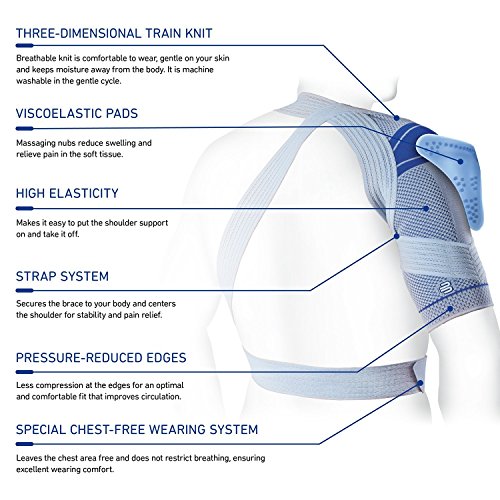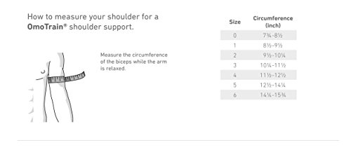 ReleaseDate : 2011-04-29 Studio : Bauerfeind Publisher : Bauerfeind Binding : Sports Product Description OmoTrain is a unique shoulder support that promotes mobility and helps limits rotation. For shoulder pain caused by osteoarthritis, or following surgery (postoperative) or injury (posttraumatic) to the shoulder joint, the OmoTrain supports the shoulder joint in a centered position for improved joint guidance. The shoulder muscles are activated and the joint benefits from improved stability. The removable visco-elastic compression pad can be used to produce a local massage effect on the soft tissues of the shoulder. When measuring, please take a very loose circumference. If between 2 sizes please go to the bigger size. 0