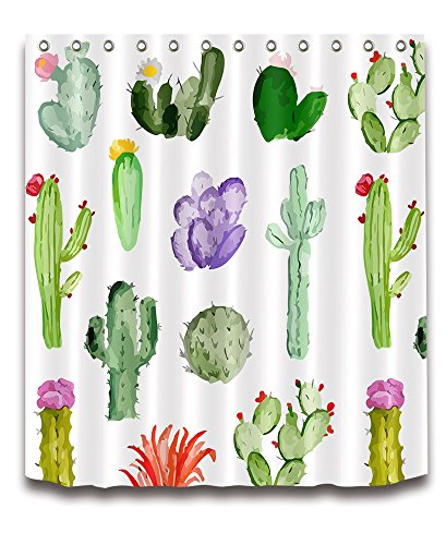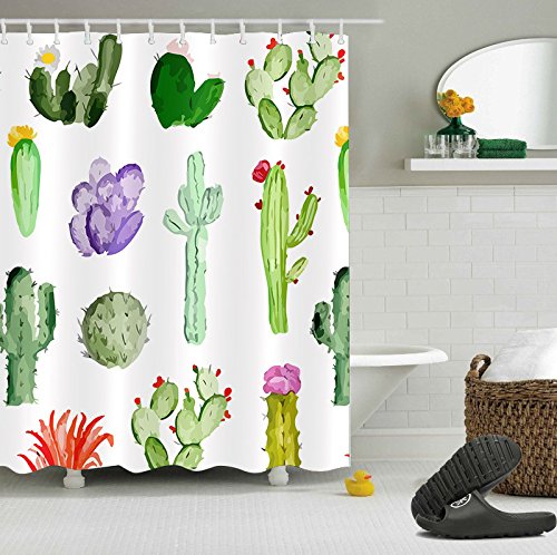 Decorations Cactus Shower Curtain Set by LB,Various Cactus Flower Decor Bath Curtain 59x72 inch Polyester Fabric Bathroom Curtains with Hooks Anti Bacterial Waterproof