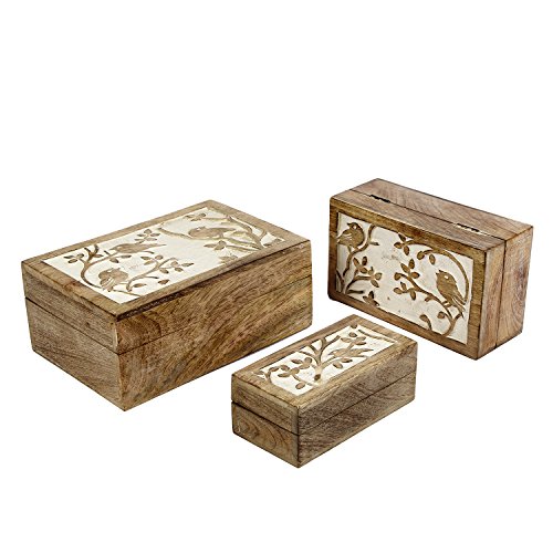 Valentine Gifts Ideas Wooden Keepsake Box Jewelry Trinket Storage Organizer Handmade Bird Motif |Handmade| (Set Of 3)