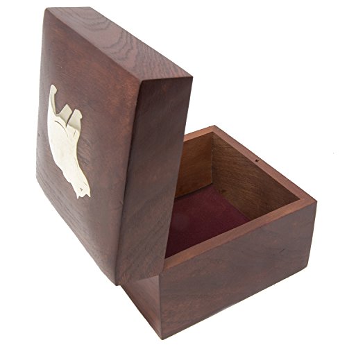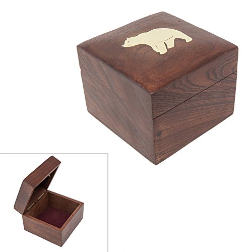 Handmade Decorative Wooden Storage Box Carved By Traditional Artisans Of India- Wood Box Storage-Square Wood Box For Trinkets-Bear Charm,4.5 Inch