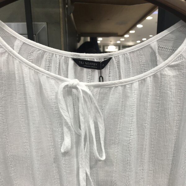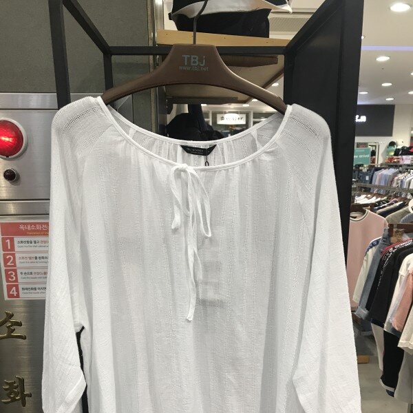 여성 7부 온부 리본끈넥 셔츠