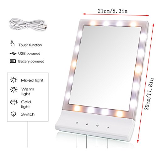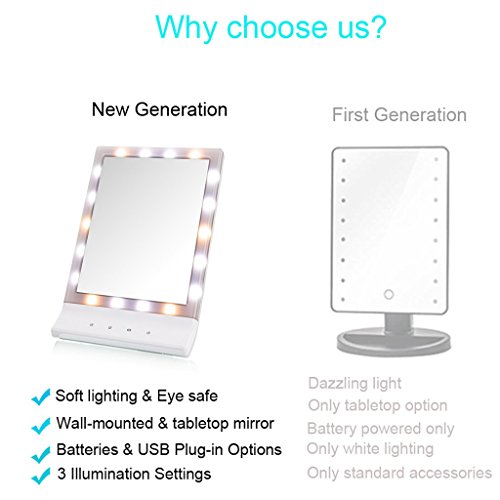 TVictory New Lighted Makeup Mirror with Bright LEDs, 3 Dimmable Illumination Settings, 2 power supply options, Wall-mounted and Tabletop Options for Cosmetic