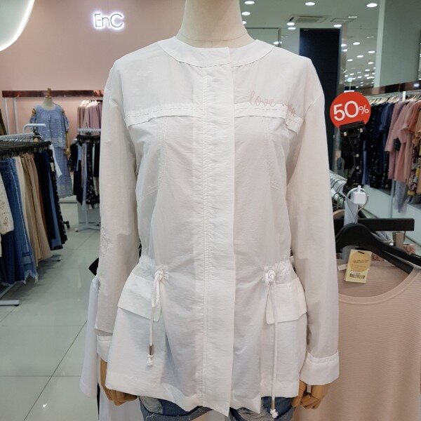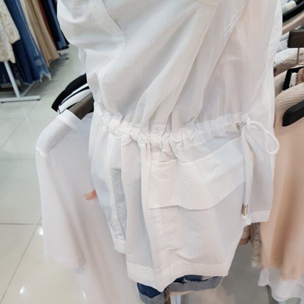 안쪽까지 비치는 원단으로 한여름까지 편안하게 입으실수 있으며 허리에 스트링들어가있어 라인감도 만질수 있는 인기 점퍼