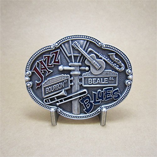 Binding : Apparel Product Description New Vintage Silver Plated Jazz Blues County Music Belt Buckle Gurtelschnalle Boucle de ceinture BUCKLE-MU070SL Brand New In Stock Only Buckle No Stand SKU:BUCKLE-MU070SL Material: Zinc Alloy Heavy Metal Antique Brushed Real Silver Color Ship to worldwide Both Safety Material and Plating by Lead Free Length Size is, 3.54 inch, Height Size is, 2.64 inch, Weight is 3.21 oz Length Size is, 90 mm, Height Size is, 67 mm, Weight is 91 g The inner diameter for back loop is, 1.58 inch (40 mm), fits belt up to 1.58 inch (40 mm) Width Button Snap On Belts All of our buckles is fitting to all of our Button Snap on Belts you could please choose your favorite belt in our store 0