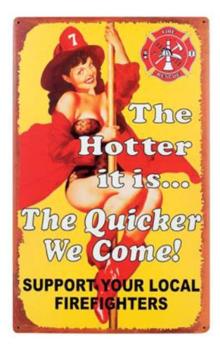 Firefighters Vintage Rustic Metal Sign - Predrilled with Curvy Calendar Girl'