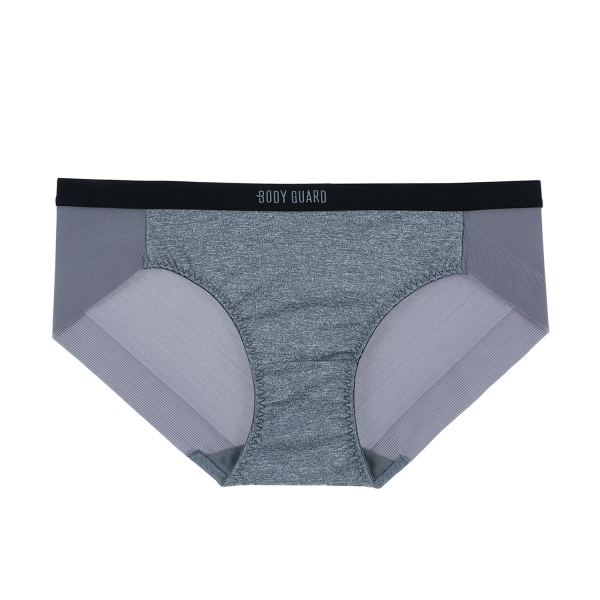 그레이컬러 멜란지로 제안하는 18년 FW 시즌의 망각브라 라인 헴팬티. 네이비컬러의 아웃밴드를 매치하여 YOUNG한 스타일 제안.