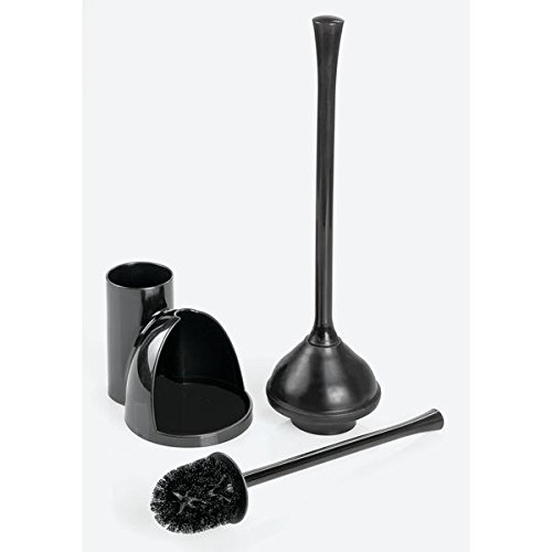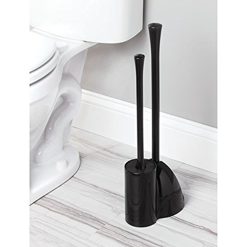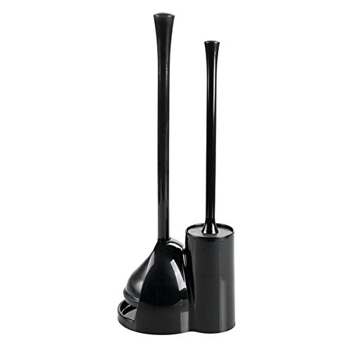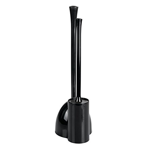 mDesign Slim Toilet Bowl Brush and Plunger Combo for Bathroom Storage - Black