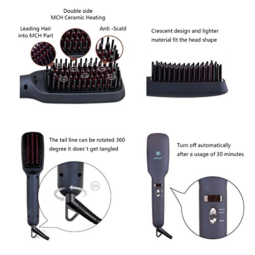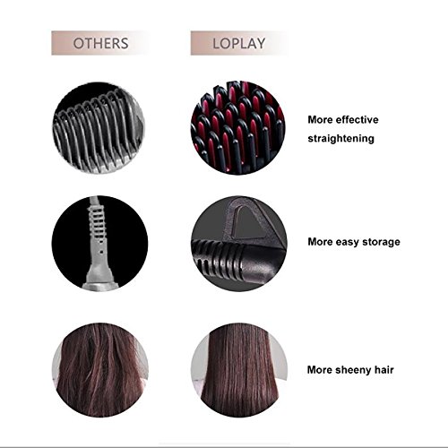 Loplay hair straightening brush makes your day, she will help you create gorgeous hair styles everyday no matter where you are.2 in 1 MCH technology for fast straight: Metal Ceramic Heater(MCH) heating elements are small ceramic stones with self-limiting temperature characteristics,