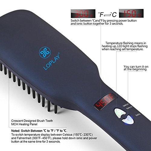 2 in 1 INNOVATIVE DESIGN: MCH and ionic technology make Loplay hair straightening brush perfect. MCH is the new heating standard for hair appliance, heat Quickly, Save Energy, More Durable, Lasts Longer, significantly reduces overall straightening, hair styling time compared to conventional hair straighteners.