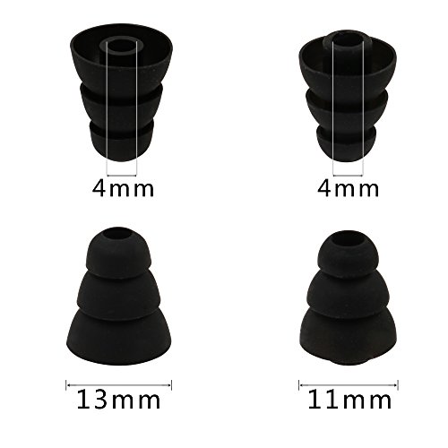 ALXCD Triple Flange Ear Tip, 6 Pairs (S/L) Size Triple Three Flange Noise Isolate Silicone Replacementl Cushion Ear Bud Tips with 4mm Connector Hole, Fit for Most In Ear Earphone (Black)[Small/Large]