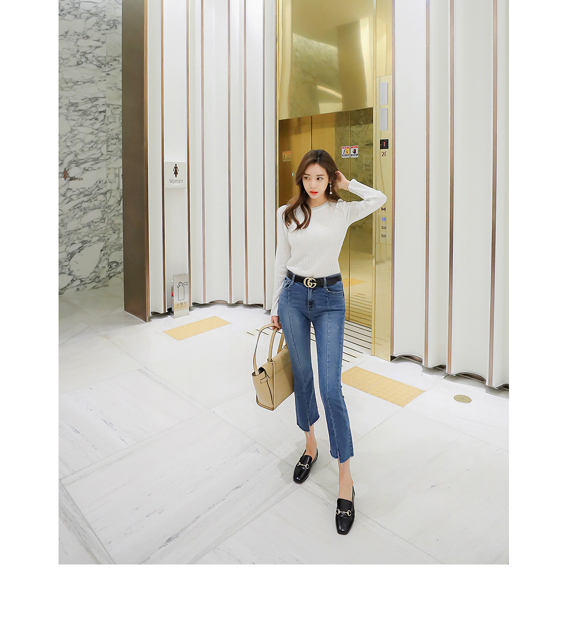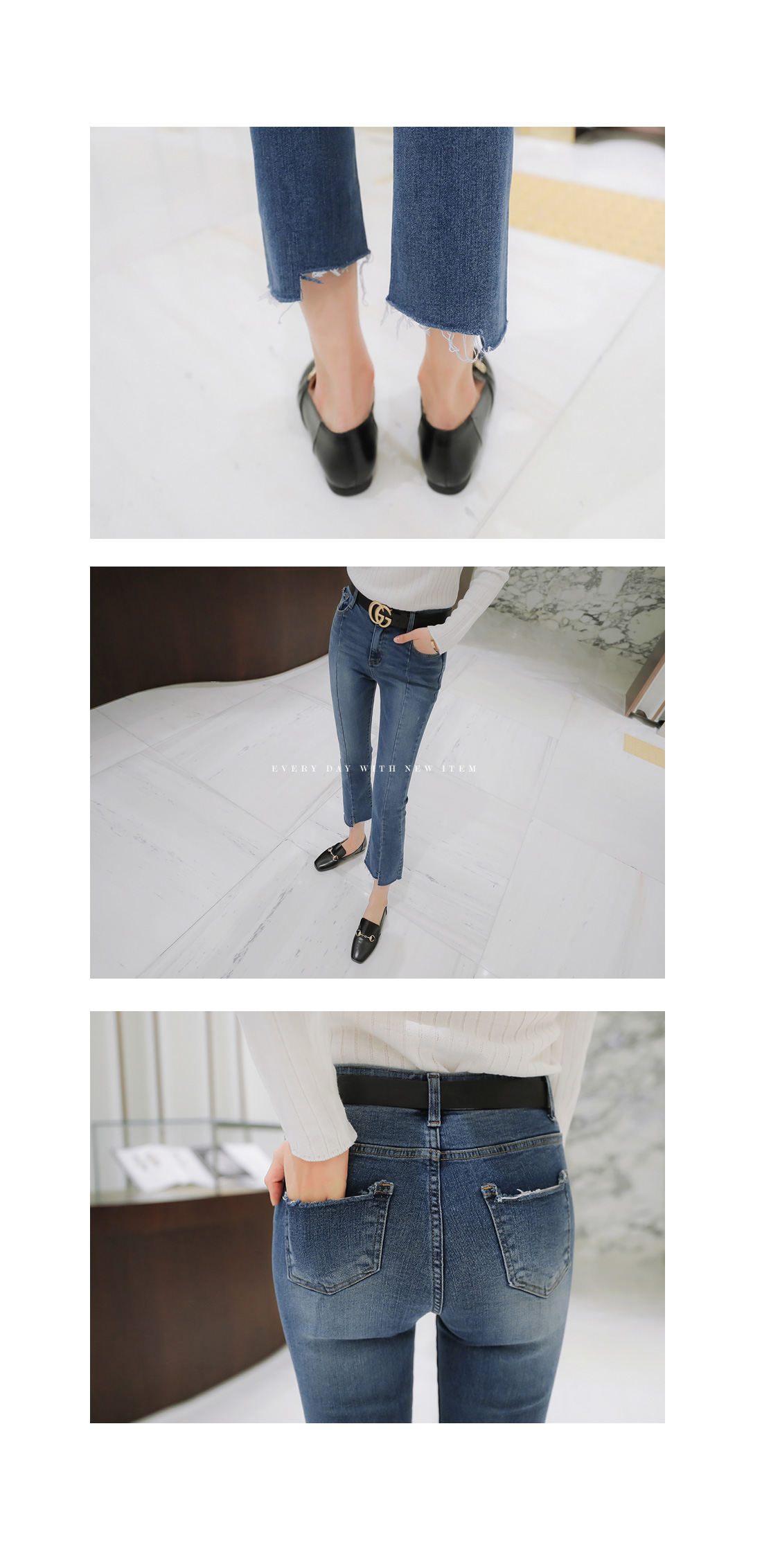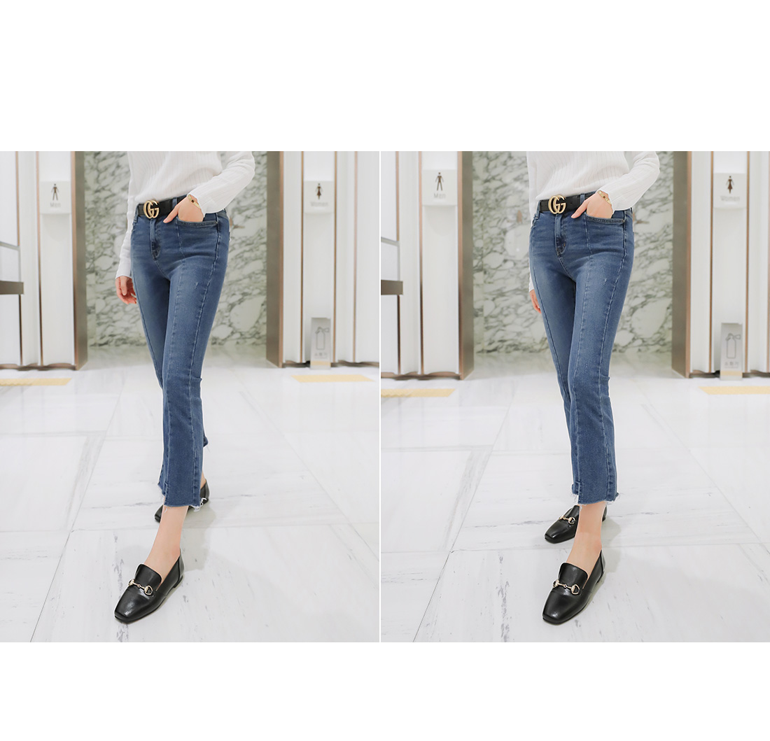 탄탄한 데님 소재로 늘어짐 걱정없이 즐길 수 있구요, 허리부터 무릎부분까지는 핏되면서 그밑으로는 자연스럽게 퍼지는 부츠컷 디자인으로 룩에 트렌디한 감각을 더해 주었는데요, 앞중심부터 절개느낌으로 연출되며 세로로 떨어지는 늘씬한핏으로 밑단에 언밸런스한 기장감과 트임을 주어 멋스러운 포인트를 더해 주었답니다!