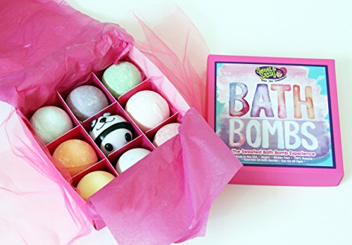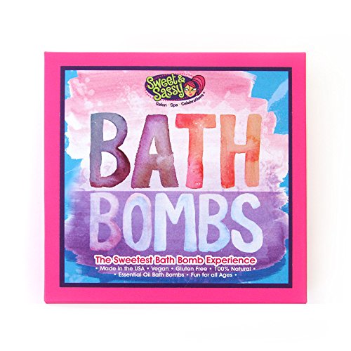 Our Bath Bombs are specifically designed for Girls & Teens. Each bath bomb is vegan, cruelty free, paraben free, and gluten free. They are also Made in the USA. Our Assorted 12-Pack is the most popular and includes all 9 of our scents, plus 3 bonus bombs! Our bath bombs arrive gift-boxed in our Signature Sweet & Sassy Pink Bath Bomb Box. Gift Boxes are hand-packaged with the "sweetness" of our Sweet & Sassy team located in Grapevine, Texas. Our scents, and the quality of our bombs, are what sets us apart! Scents were chosen as favorites by girls and teens and include: Sweet, Sassy, Love, Joy, Peace, Go-Go!, Chill, Dreamy! They smell great in the bathtub and fizz for over 4-5 minutes. Even though our products are designed for girls and teens, they can be enjoyed at any age! We include a Sweet & Sassy bath toy in all of our boxes. These vary by color and style. Current Rubber Ducks are Sweet or Cupcake Themed (used in 12 packs). Current Animal Squirts include Panda, Monkey, or Elephant (used in assorted 8 packs and specialty 8 packs). These are fun extras and cannot be specified per pack. Ingredients: Sodium bicarbonate, Citric Acid, FD&C food color, and essential oils of plumeria, orange, tangerine, vanilla, lemon, grapefruit, lavender, lime, and litsea.Feature