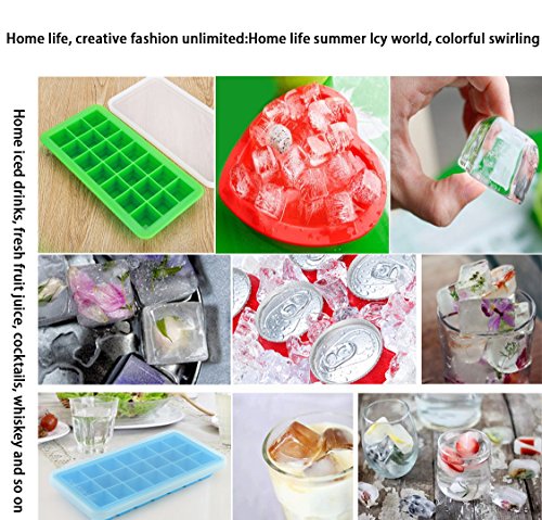 About The Product - Our silicone ice cube trays are made of premium food-grade silicone, BPA free and FDA approved, you can rest assured that your ice cube trays will not crack or leak in the future. - There are 21 cube compartments each ice tray, which is separated, single cube dimensions 1.3 inches, perfectly sized for all beverage. Melt slowly and cool your drink fast with minimal dilution. - Korlon ice cube trays covered with PP lids, keep your ice clean and free from freezer odors, easy to stack and save room in freezer, prevent leaking, help you make perfect shaped cubes. - These ice cube molds are perfect for baking or freezing anything. Use as an ice or chocolate mold. Great for baking brownie bites, cake, muffins, dog treats and more. Freeze baby food, cocktails, whiskey, juices, herbs and more.