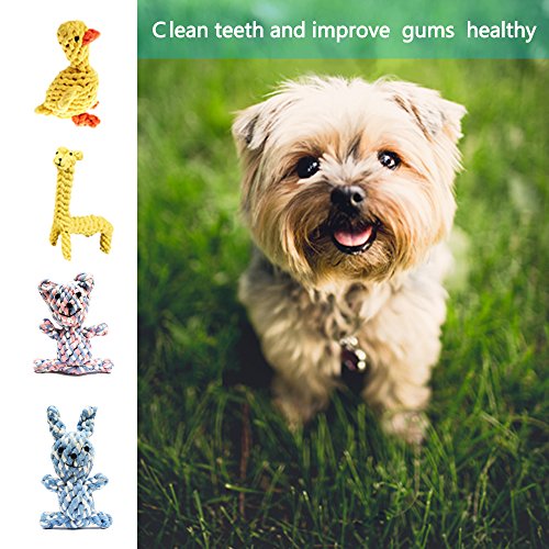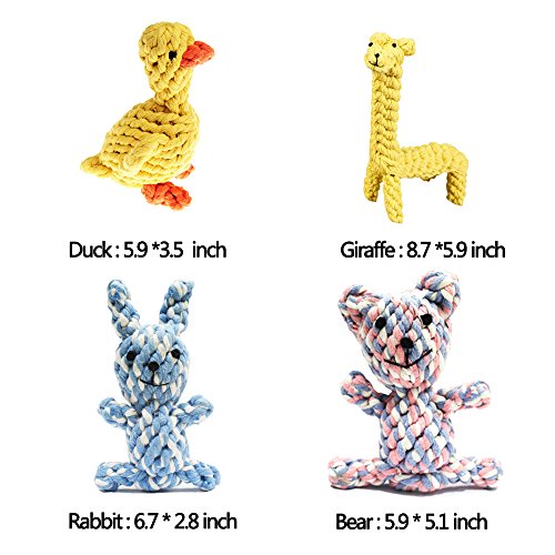 Studio : ADOGO Publisher : ADOGO Binding : Misc. Product Description Toy Rope Feature: -100% cotton material, health , safety and non-toxic to help dogs grow healthily and happily. -Helps dogs with teeth and gums clean and healthy, reducing dental calculus and other diseases. Especially suitable for young dogs, when their teeth grow ,it will need chewing, dog toy healthy chewing is the best choice. -Perfect for Interactive play, not only enhance the feelings of between you and your dog ,but also exercise your dog brain and sense to make dogs smarter and more happy. -Multicolored dog toys are more likely to be loved by dogs, suitable for small and medium dogs, and how can a growing dog reduce the company of toys? Specification: Color: Multicolour Quantity: 4 pcs Material: Cotton Rope? Package Including: 1X Duck 1X Giraffe 1XBear 1X Rabbit