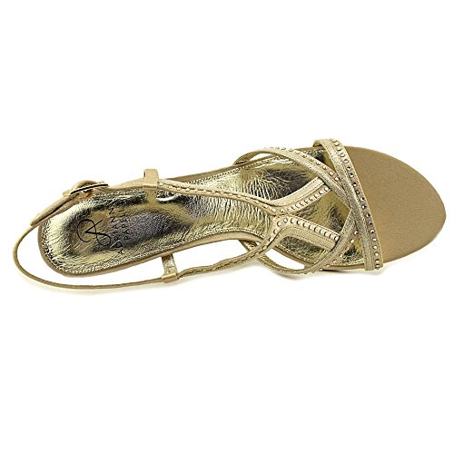 Product DescriptionLow heel evening sandal with strappy details and gem stones0