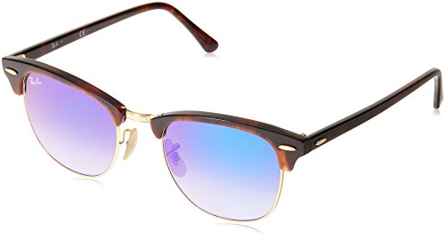 Ray-Ban Sunglasses, style RB3016 Clubmaster is a rx-able rectangular metal frame rimmed with plastic on the upper frame. The RB3016 features adjustable nose pads and plastic temples for superb comfort. The Ray-Ban logo is featured on the temples. Ray-Ban Sunglasses have scratch/impact-resistant lenses. Size: 51-21-145 mm/49-21-140 mmFeature