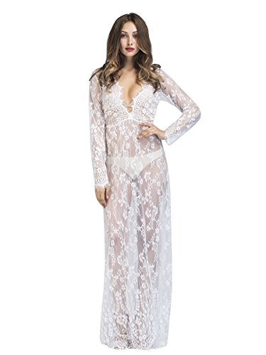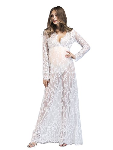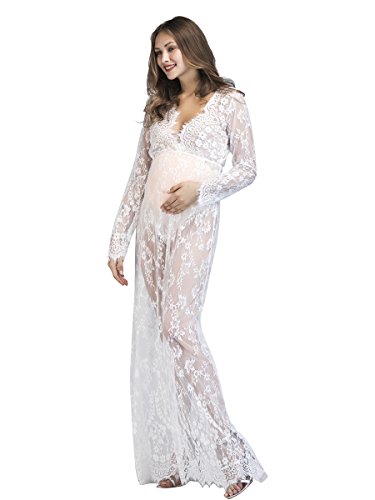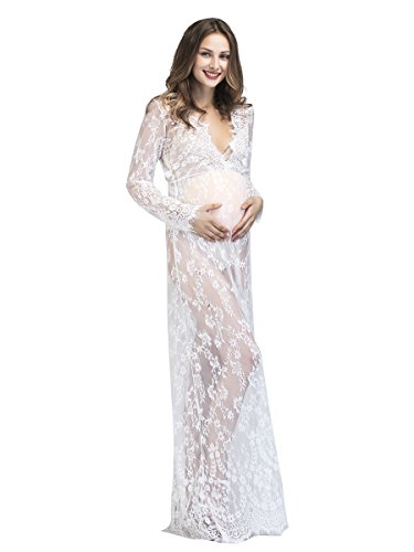 This gorgeous lace gown is Beautiful in pohots, you can wear it as a maternity dress for pictures of your pretty belly for the new baby; you can wear this over a slip as it is see through and will show your underwear and lady parts; you can also wear it as a Zombie Bride cosplay at Halloween!