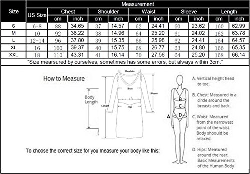 Size chart: Size S: Bust: 86cm/33.9''---Waist: 62~72cm/24.4~28.4''---Sleeve: 60cm/23.6''---Length: 160cm/63.0''
