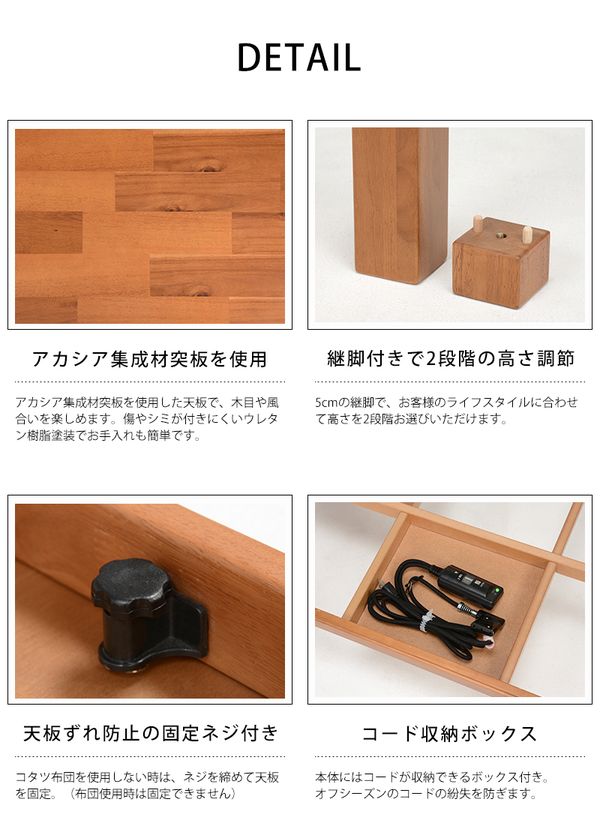 ●天板:アカシア集成材突板 塗装:ウレタン樹脂塗装 ヒーター:LH-G6FC 石英管ヒーター(手元電子コントローラー)