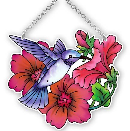 Joan Baker Designs SSC1026R Hummingbird and Petunia Art Glass Suncatcher
