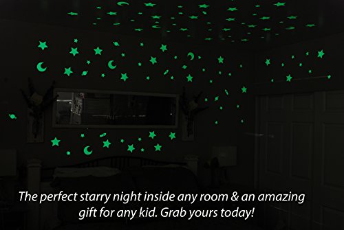 -. Binding : Kitchen -. Color : White -. EAN : 0646437143653 -. Feature : THE PERFECT GIFT FOR ANY KID: Impress your kids and loved ones with this beautiful high quality gift set of 100 amazing glow in the dark figures. With 50 (3.8cm) stars, 35 (8.5cm) stars, 5 (8cm) moons, 5 (6.8cm) planets, & 5 (7cm) rocket ships you have everything you need to decorate your bedroom and turn it into a beautiful starry night / STRONG & LONG LASTING GLOW GUARANTEED: The thing that makes The Glowers better, different & more effective than regular cheap plastic stars is that ours are printed. we cover the glow powder on the surface with clear high quality plastic which helps the stars absorb the light much more effectively & faster & in return makes them glow stronger & for longer periods of time than others. / NO NEED FOR ANNOYING STICKY PUTTY: Using sticky putty can sometimes become annoying, especially when you run out of it and want to change your stars to different places. Unlike others the glowers by get Childish are made with high quality glue which makes it extremely easy to remove the stars when ever you feel like changing them to different places with out worrying about sticky putty. / DON'T WORRY ABOUT STARS FALLING OFF ANYMORE: Decorate your room ceiling, walls, door, TV, drawer, computer and more without worrying about them falling off and lying in your face or floor. With its high quality glue and light weight design you can be 100% sure that your stars will stay in place forever. / 100% MONEY BACK LIFETIME WARRANTY: You really have nothing to lose, we are very confident that you will be very happy with your new Glowers that we offer a lifetime warranty. If for some reason you are not happy with your new Glowers just contact us here on Amazon.com and we will send you every single penny of your purchase no questions asked. GIVE IT A TRY, its very easy just CLICK THE ADD TO CART BUTTON and get ready to enjoy an amazing starry night experience. EXCLUSIVELY ON AMAZON -. Label : Get Childish -. Manufacturer : Get Childish -. PackageQuantity : 50 -. ProductGroup : Home -. ProductTypeName : HOME -. Publisher : Get Childish -. Studio : Get Childish -. Title : Glow in the Dark Star Stickers - Best Gift Set with Strong & Long Lasting Glowing Stars, Moons, Planets and Rocket Ships - Perfect for Enjoying an Amazing Starry Night with Your Friends & Family! -. UPC : 646437143653 -. Warranty : We offer you a 100% lifetime warranty. In case you have any issue with your purchase please contact us here on Amazon.com we would love to help you & we will refund you every single penny of your purchase no questions asked.