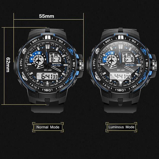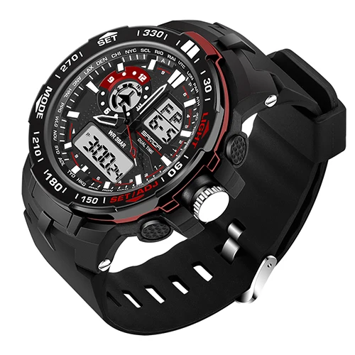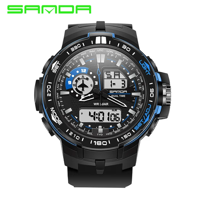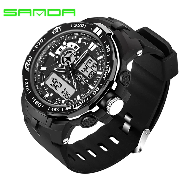 | [해외] 남성 석영 디지털 듀얼 타임 남성 스포츠 시계 남성 sanda 군사 육군 reloj 험 브레 led 손목 콜 saati |