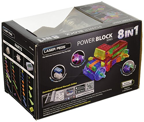 -. Feature : Includes Power Block Power Base, 2 Laser Pegs, 100 Construction Bricks, 4 Tire Pegs, Instruction Manual / 100% Compatible with Other Major Construction Kits / Requires 3 AAA Batteries, Not Included