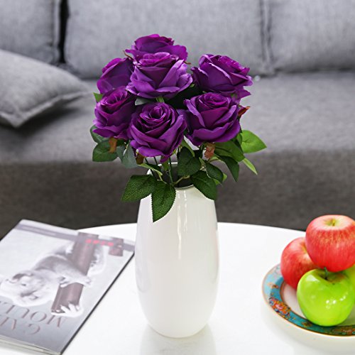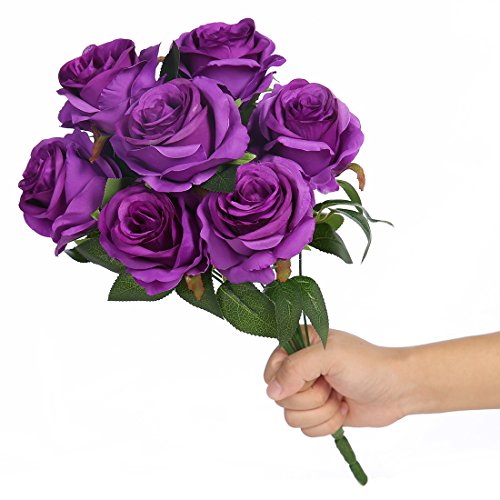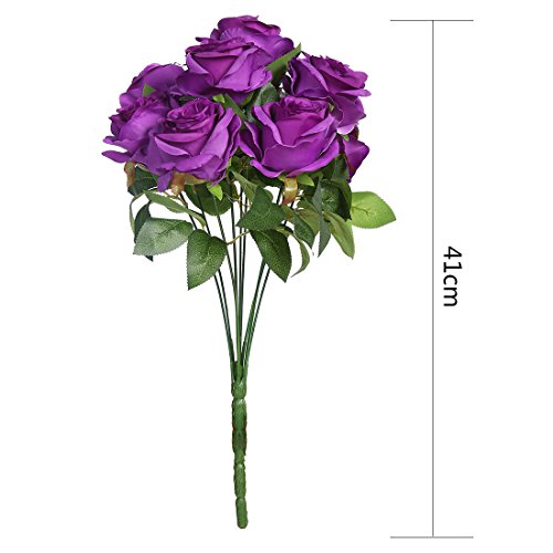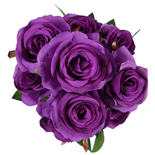 Veryhome Artificial Flowers 9 Heads Natural Looking Roses For Wedding Home Shop Decor (Purple)