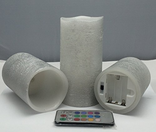Adoria Silver Flameless Led Candle Timer,Real Wax Rustic Battery Operated Candles Set of 3 ,Tall 4",5",6inch