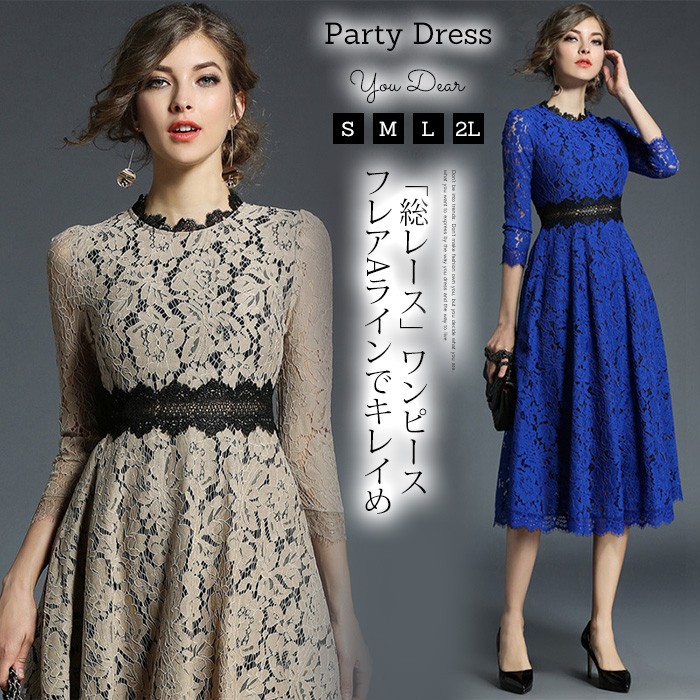 パーティードレス 結婚式 ワンピース ドレス お呼ばれ 二次会 披露宴 パーティー レディース フォーマル ワンピース 20代 30代 40代 50代 フレアAラインワンピース レースワンピース ミモレ丈 ロング丈ワンピース レースドレス 二次会 ロングドレス 演奏会 ロングワンピース Aライン 体型カバー 秋 大人 可愛い ベージュ ネイビー ■使用シーン等:結婚式 パーティー 結婚パーティー 二次会 披露宴 お呼ばれ 普段使い 通学 通勤 OL ビジネス 入園式 入学式 ママ 卒園式 お食事会 成人式 卒業式 謝恩会 同窓会 演奏会 発表会 女子会 参観日 七五三 お宮参り 20代 30代 40代 50代★生産地:中国★素材:レース・ボリエステル★カラー:ネイビー ベージュ★サイズ(単位cm):S:バスト80 ウエスト66 肩幅33 袖丈46 着丈112M:バスト84 ウエスト70 肩幅34 袖丈47 着丈113L:バスト88 ウエスト74 肩幅35 袖丈48 着丈114XL:バスト92 ウエスト78 肩幅36 袖丈49 着丈115
