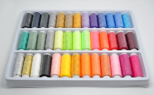 -. Feature : High quality, 39 volume 39 color sewing thread, containing gold and silver each roll Oh, the quality is very good! / This line is the standard 402 line for quilting stitch, hand-sewn, sewing machine. / High strength 37 Volume about 150 meters long; Spool size: 5.7(length)*2.2(diameter)cm approx 150 meters; 100% polyester sewing thread: Sewing for a variety of common fabrics / Volume 1 gold and 1 silver reel line (150 yards each ), 85% rayon, 15% polyester): embroidery for free / Package Content : 39 Colors Polyester Sewing Thread